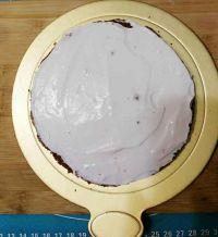 5.取一片切好的可可蛋糕片用抹刀抹上打发好的奶油