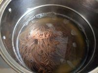 3.汤锅中倒入适量的水煮开,下入荞麦面煮软后搅散。