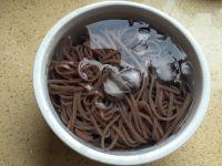 5.将煮好的荞麦面条捞出,放入凉开水中冲洗一下。
