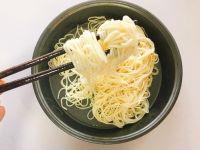 2、面条煮熟后一定要先降温、挥发水分后才能加油搅拌,如果一出锅就直接加油,油会包裹住面条上的多余水分,这样做出来的凉面会湿、软且容易粘黏在一起。