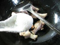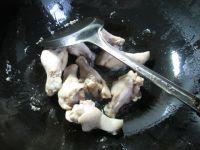 2.烧锅倒油烧热,下入焯好的鸡翅根翻炒翻炒。